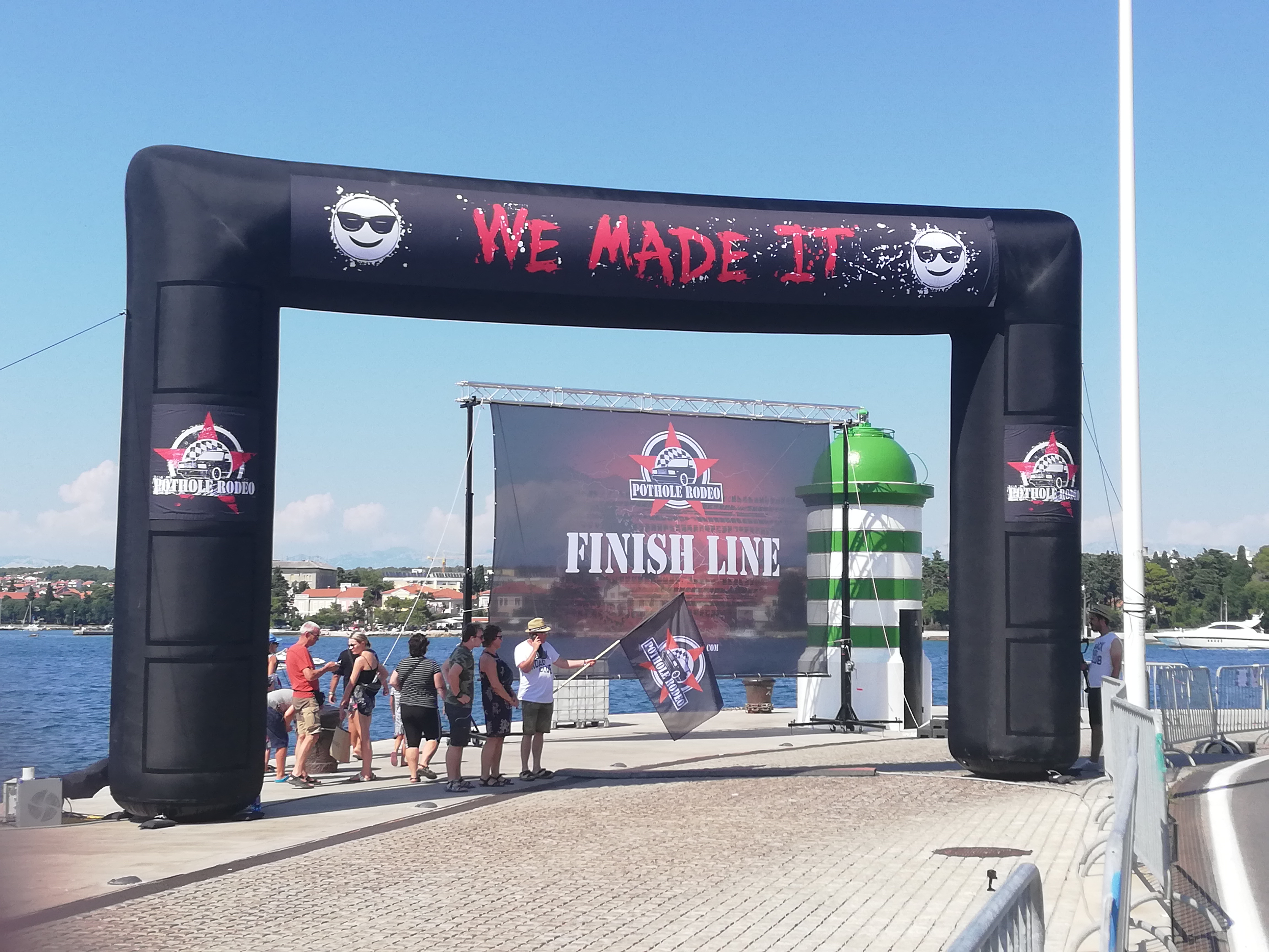 Pünktlich zur Öffnung des Zieleinlaufes sind wir dann an der Strandpromenade von Zadar eingelaufen. Ein paar Teams waren schon da, einige sind gleich weiter nach Hause. U. a. auch Jerome und Sandro aus Luxemburg, die uns in den letzten Tagen immer wieder über den Weg gelaufen sind und interessante Gespräche lieferten.