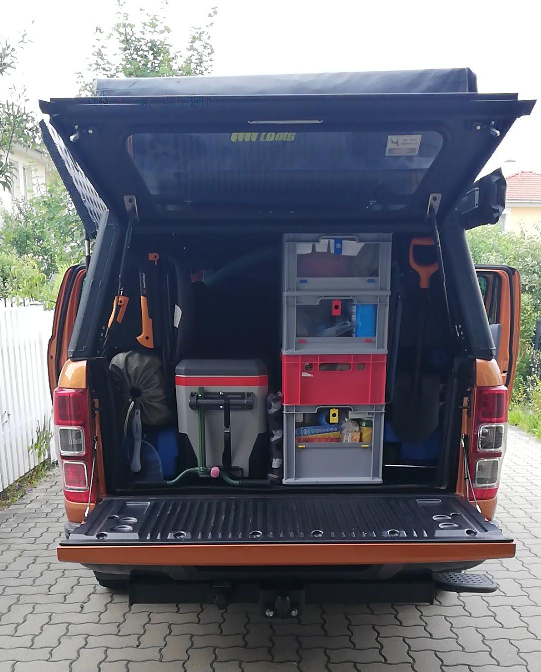 WO FINDEN WIR UNSERE SACHEN? Tja, zunächst vermutlich mal in Kisten. Oder aber auch in Taschen … oder einfach irgendwo im Hardtop. System haben wir noch nicht so wirklich. Aber da trifft es sich gut, dass es Emily an unserem ersten Stopp so gut gefällt, dass wir einen zweiten Tag angehängt haben, um a) erstmal anzukommen und b) unser Packsystem zu überarbeiten 😉