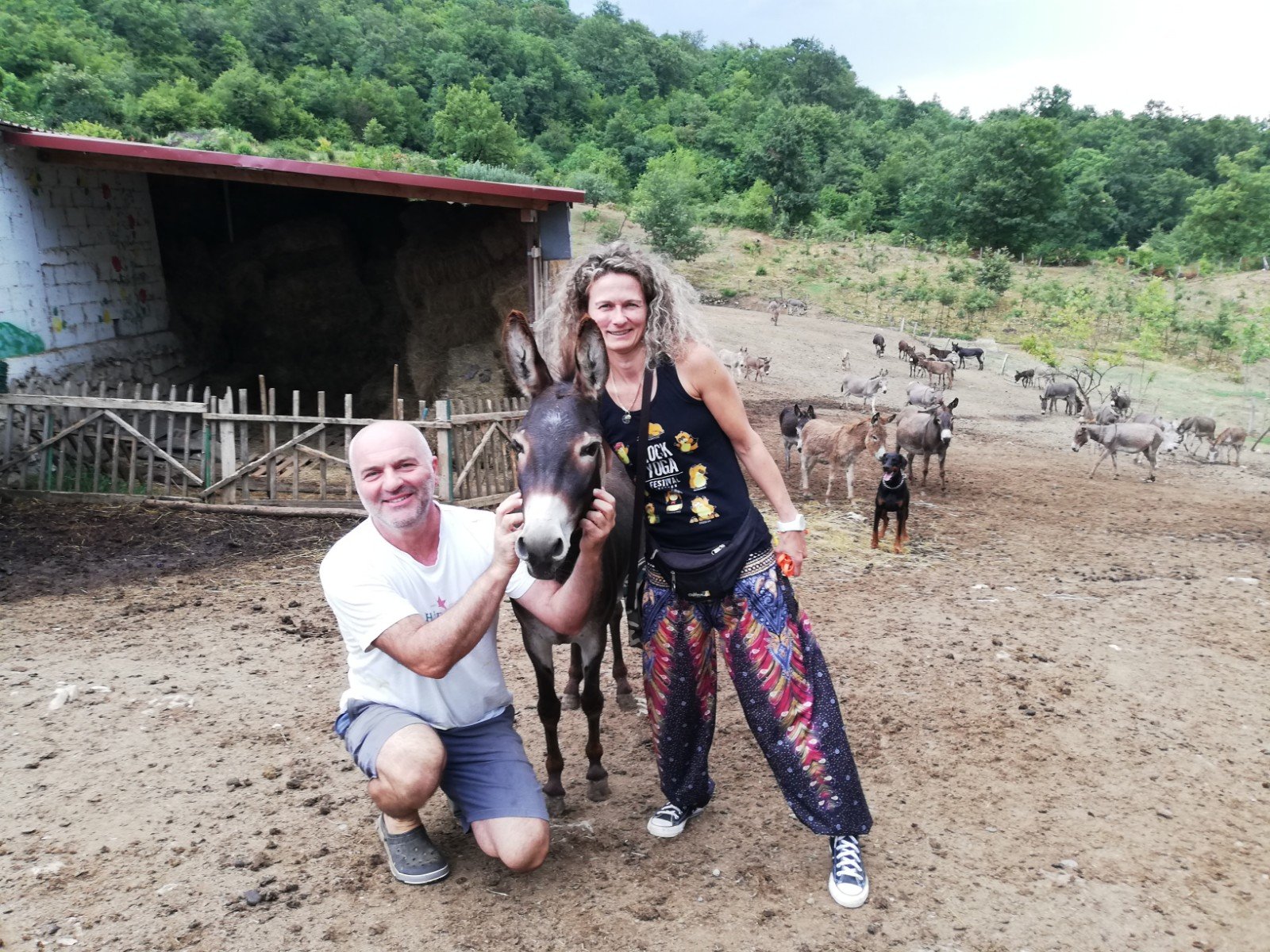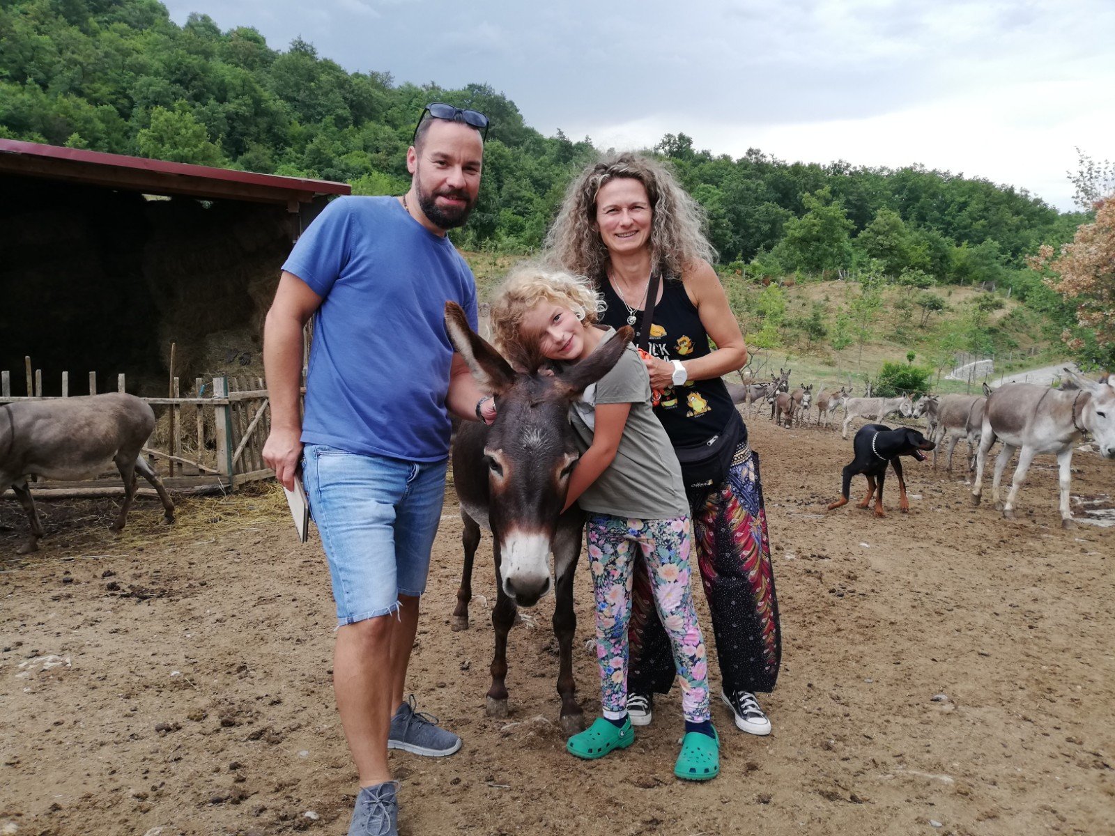 Vor dem Grenzübertritt nach Albanien stand noch unser Tageshighlight an: Der Besuch der Eselfarm Magaraca Martinici in Montenegro. Die Farm wurde 2015 vom überaus sympathischen Darko gegründet, um die letzten verbliebenen Esel in Montenegro zu retten. Noch vor 30 Jahren waren sie in den Haushalten der felsigen Landschaften Montenegros als Nutztier nicht wegzudenken. Im Zuge der industriellen Revolution in den Dörfern haben die Esel aber ihre Bedeutung verloren und fristen zum Teil ein karges Dasein. Darko hat es sich zur Aufgabe gemacht, einen Zufluchtsort für Esel zu schaffen, um sie vor Quälerei, Hunger und schwerer Arbeit zu schützen. Auch Hunde werden immer wieder auf der Farm abgegeben, sodass sich dort eine erquickliche Anzahl von Spielgefährten für Fae gefunden haben.