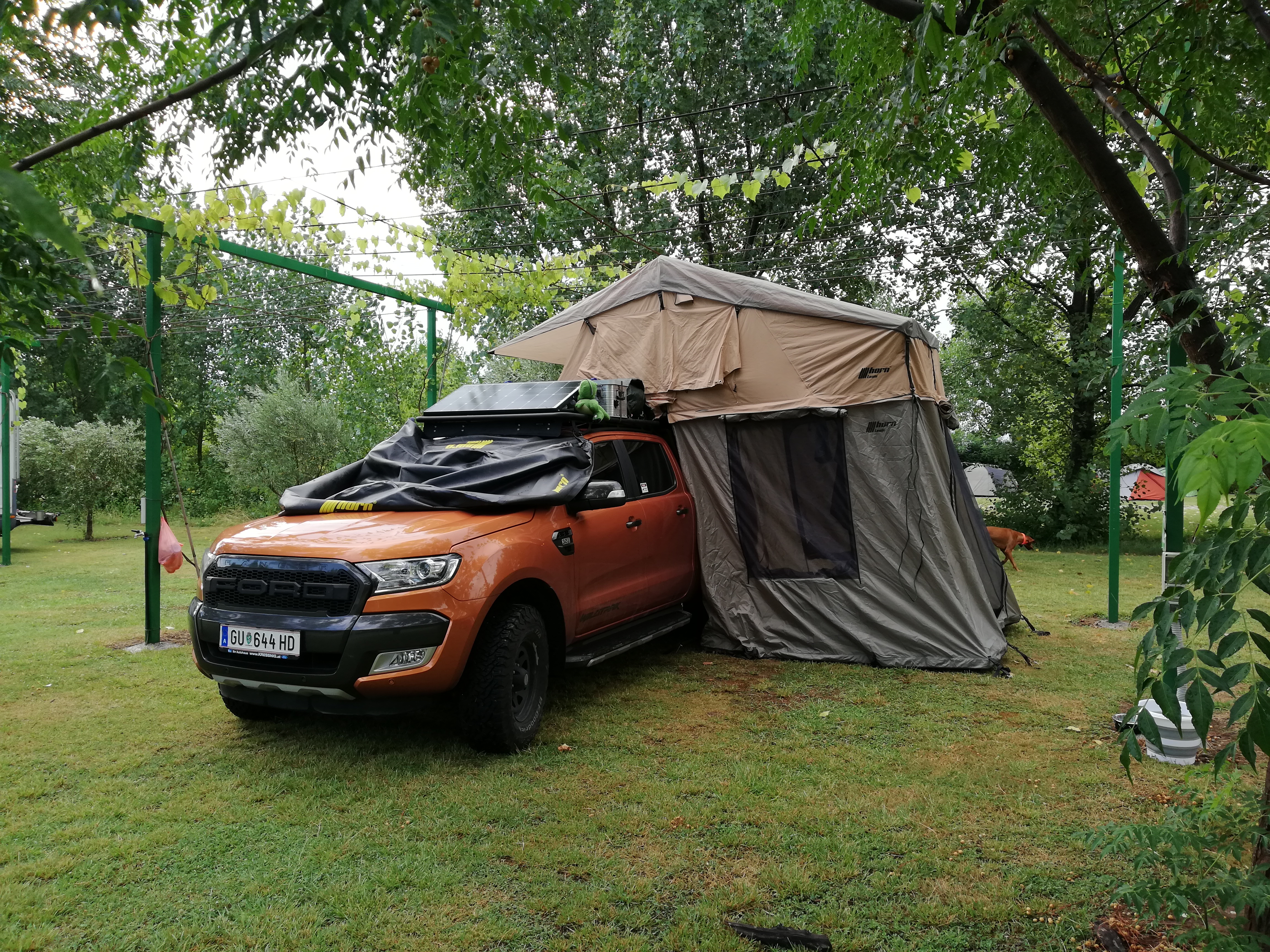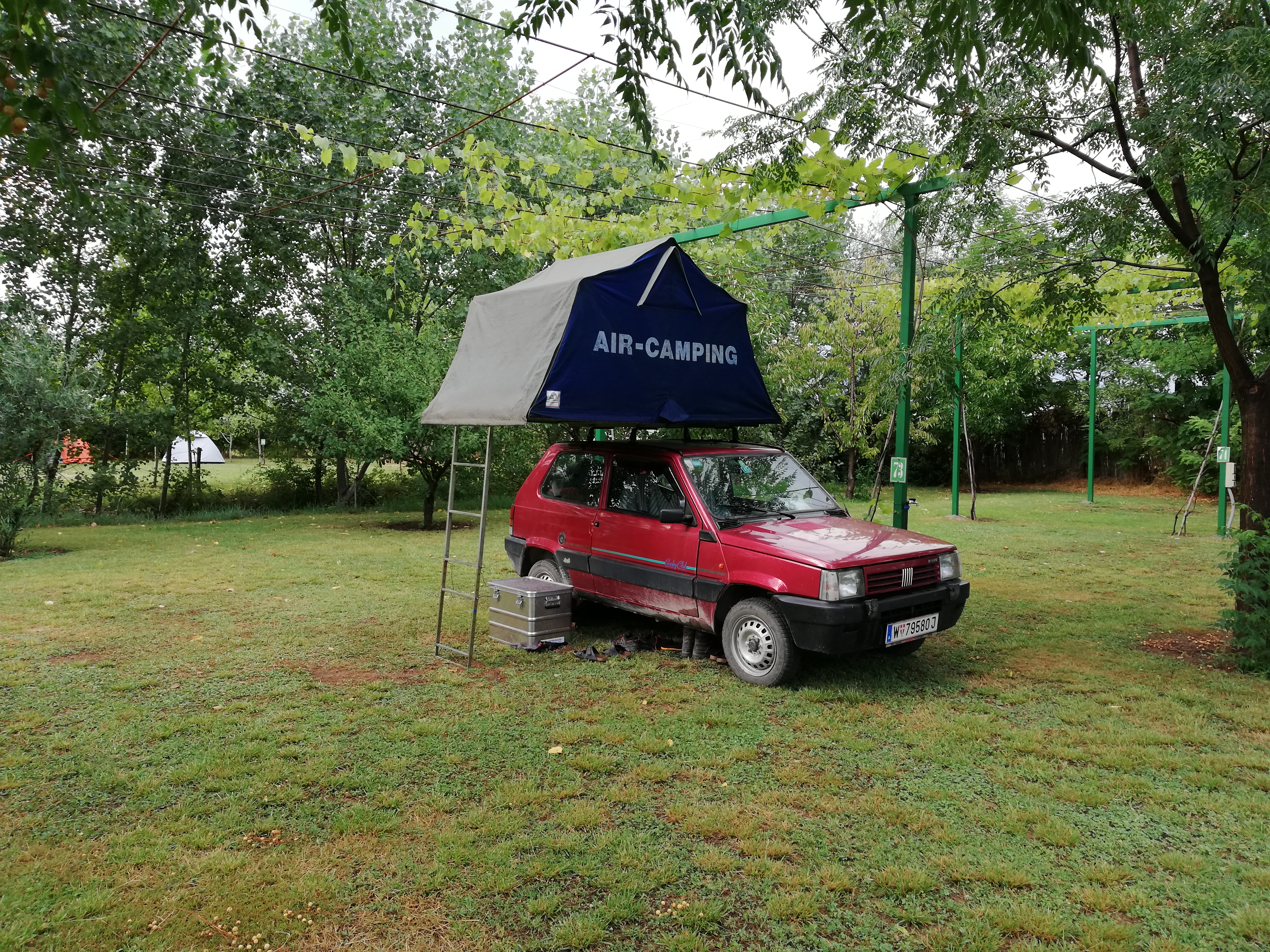 Anhand der Fahrzeuge war gut erkennbar, dass hier auch viele Overlander Halt machen. Dass Größe dabei nicht alles ist, war an unseren Wiener Nachbarn gut zu sehen.