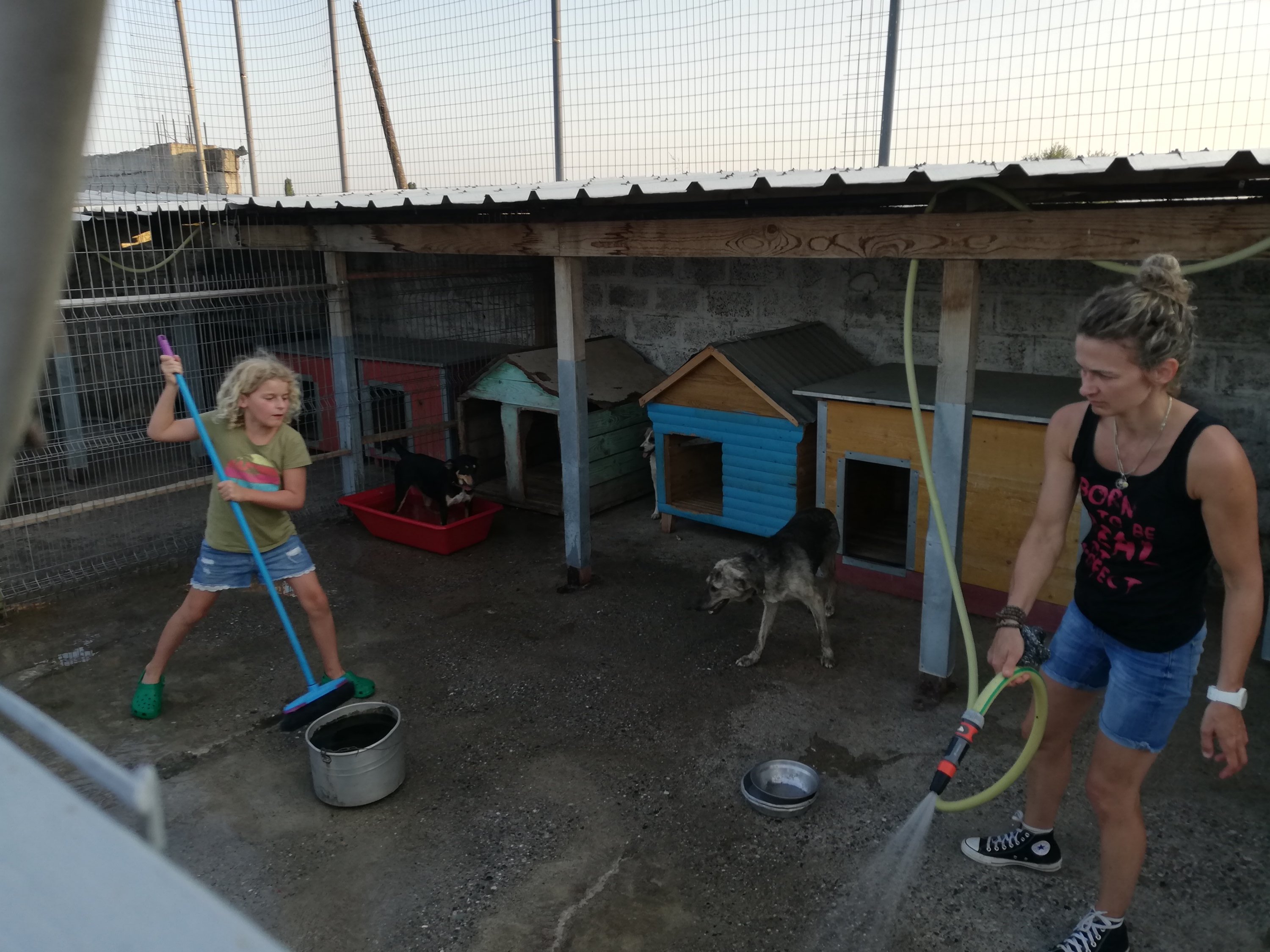 Zwei Tage durften wir im Durchlaufzentrum tatkräftig mithelfen. Das Säubern der Gehe, das Füttern der Hunde sowie ausgiebiges Beschäftigen mit den Hunden stand am Programm. Aus den gesammelten Spendengeldern von Birgits Yogis und Shiatsu-Kunden konnten wir € 300 für dieses Vorzeigeprojekt an Erza und Karl übergeben.