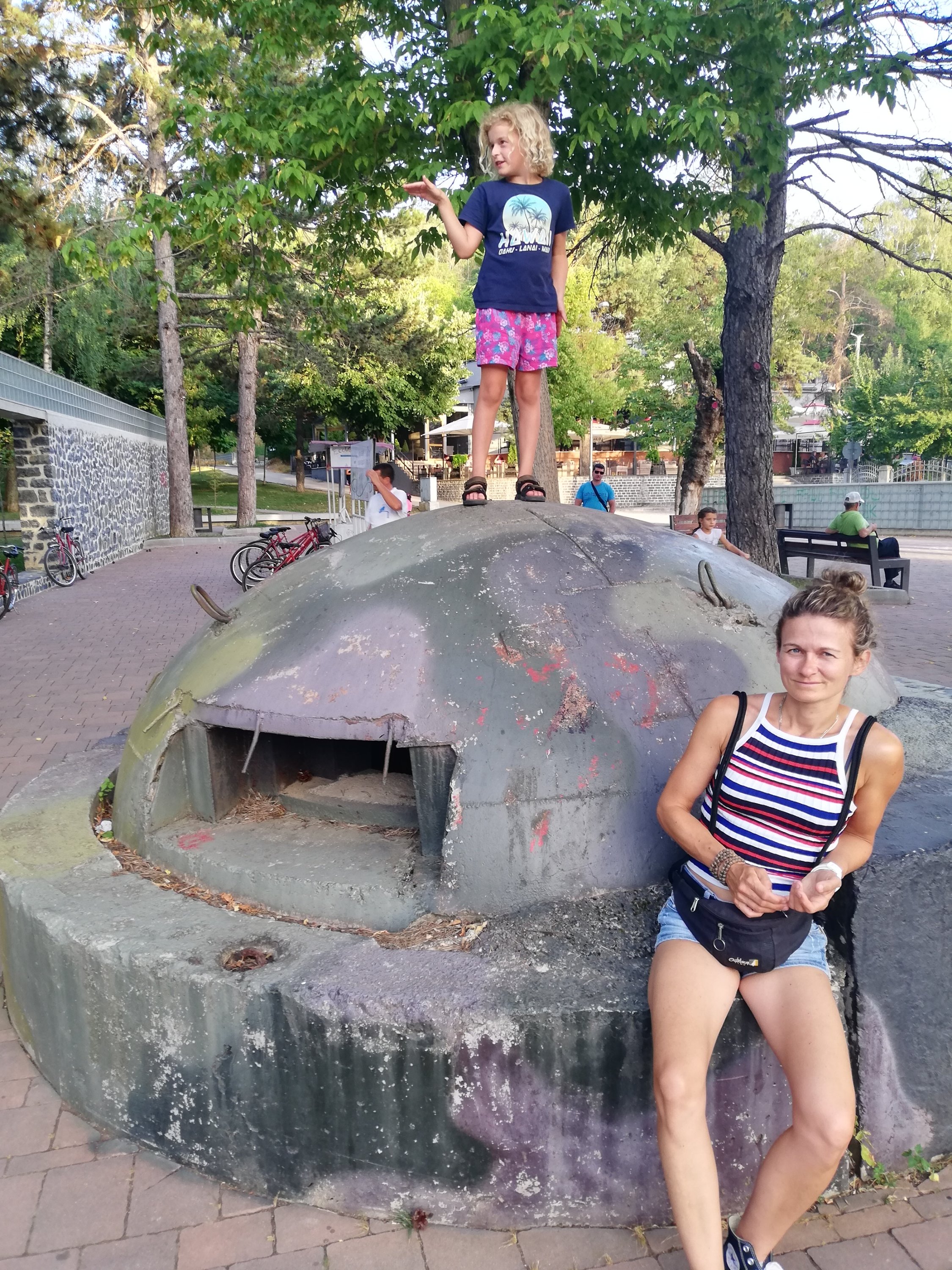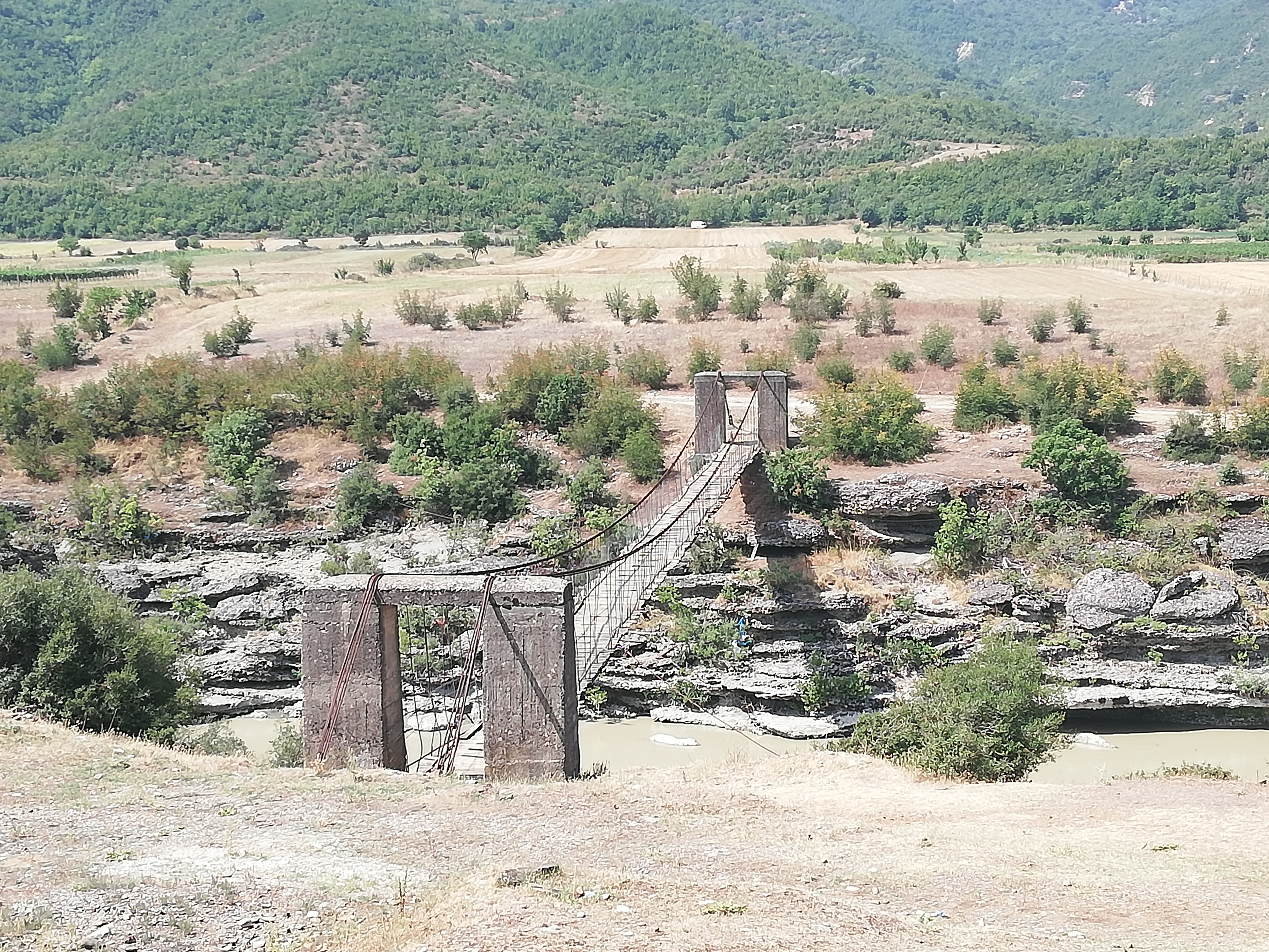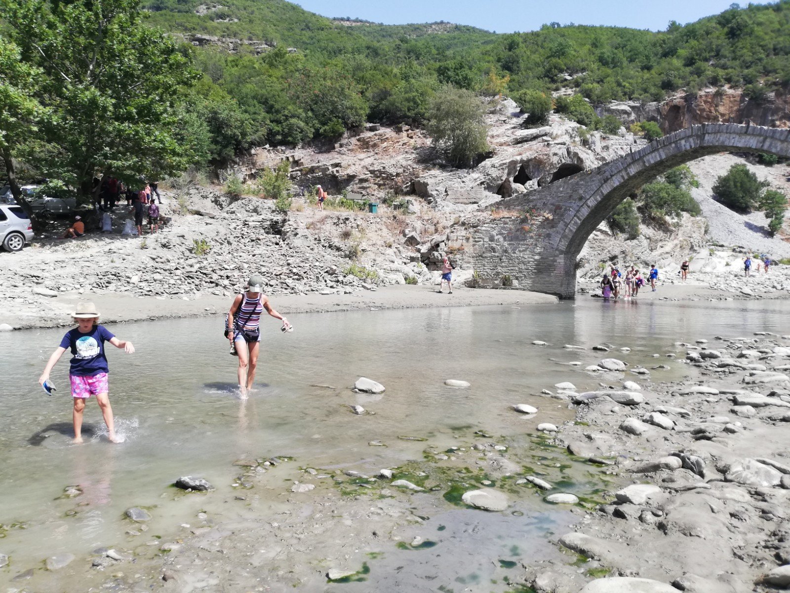 Unterwegs kamen wir an den Bënja Thermalquellen vorbei. Bei den sechs Quellen tritt bis zu 30 Grad warmes Wasser hervor, dem eine heilende Kraft zugesprochen wird. Die Bäder bestehen aus einfachen, ungeschützten Natursteinbecken. Die Quellen waren schon zur römischen Zeit bekannt. In der kommunistischen Ära gab es in Bënja einen Badetourismus von wenigen hundert Personen pro Jahr. Davon kann man aktuell nur träumen, denn leider verkommen die Quellen immer mehr zu einem Touristen-Hotspot. Ansonsten hätte dieser Ort für uns bestimmt auch seinen Reiz für eine Tag Aufenthalt gehabt. Emily aber war das egal und sie genoss – wohlgemerkt bei 39 Grad Außentemperaturen – die warmen Quellen.