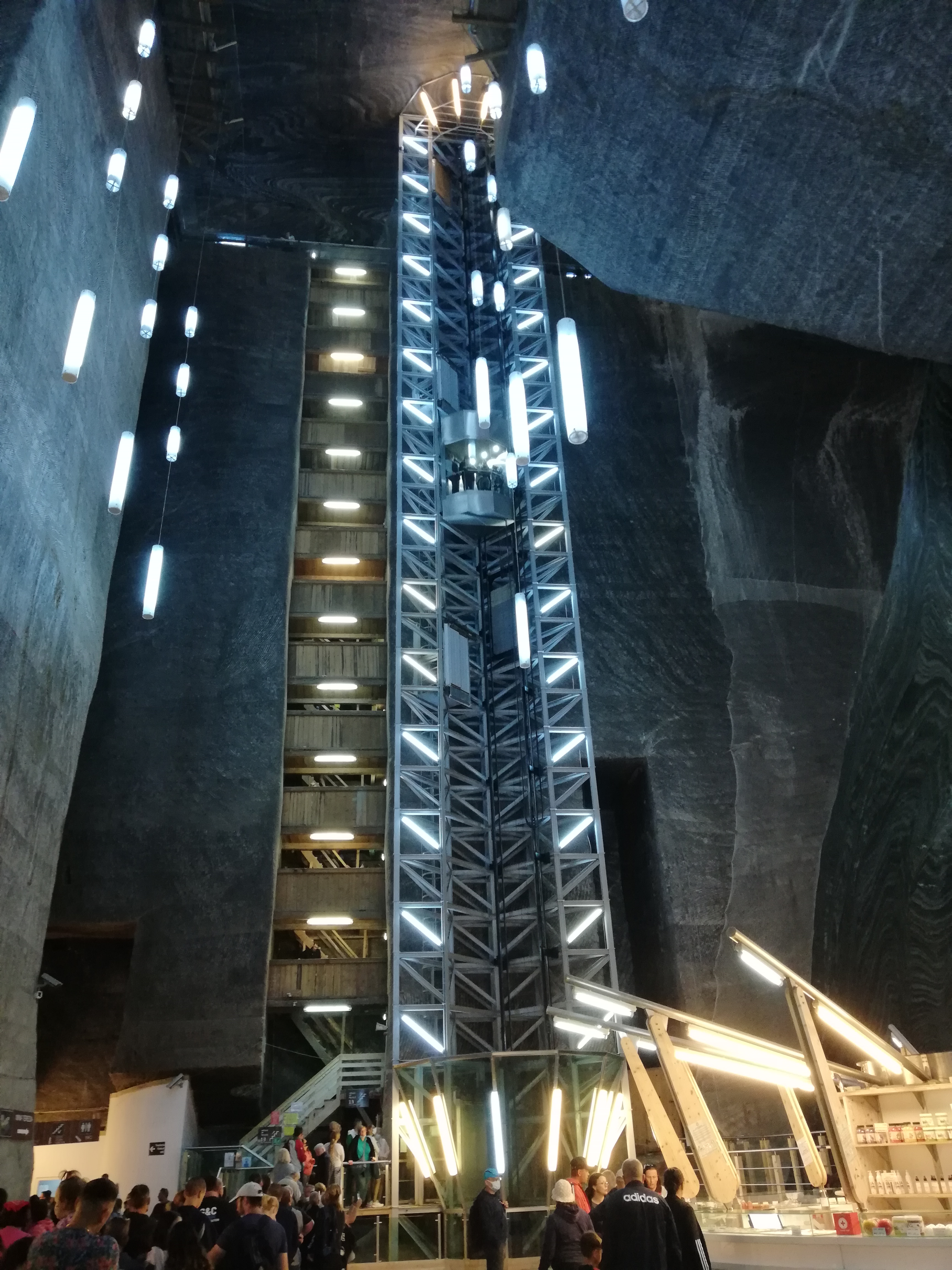 Tag 2 nutzten wir erneut für eine Fahrt nach Turda. Dieses Mal aber in unserem eigenen Interesse. Wir besuchten das beeindruckende Salzbergwerk von Turda. Bereits in der römischen Zeit wurde hier Salz abgebaut. 1690 begannen unter Habsburger Herrschaft die Arbeiten am heutigen Bergwerk, was leicht an den österreichischen Namen Franz-Josef und Rudolf für die zwei größeren Stollen zu erkennen ist. Heute ist das eingestellte Salzbergwerk nicht nur ein Schaubergwerk, sondern vermutlich auch der tiefst gelegene Freizeitpark der Welt. Wo sonst findet man ein Riesenrad, einen Minigolfplatz, Tischtennis, Billard und Bootsverleih in einer Tiefe von über 120 Metern? Uns jedenfalls hat das Bergwerk tief beeindruckt und unsere Wadeln auf den vielen zu erklimmenden Stufen vorgerichtet, da Emily und Birgit nicht in den Aufzug einsteigen wollten.