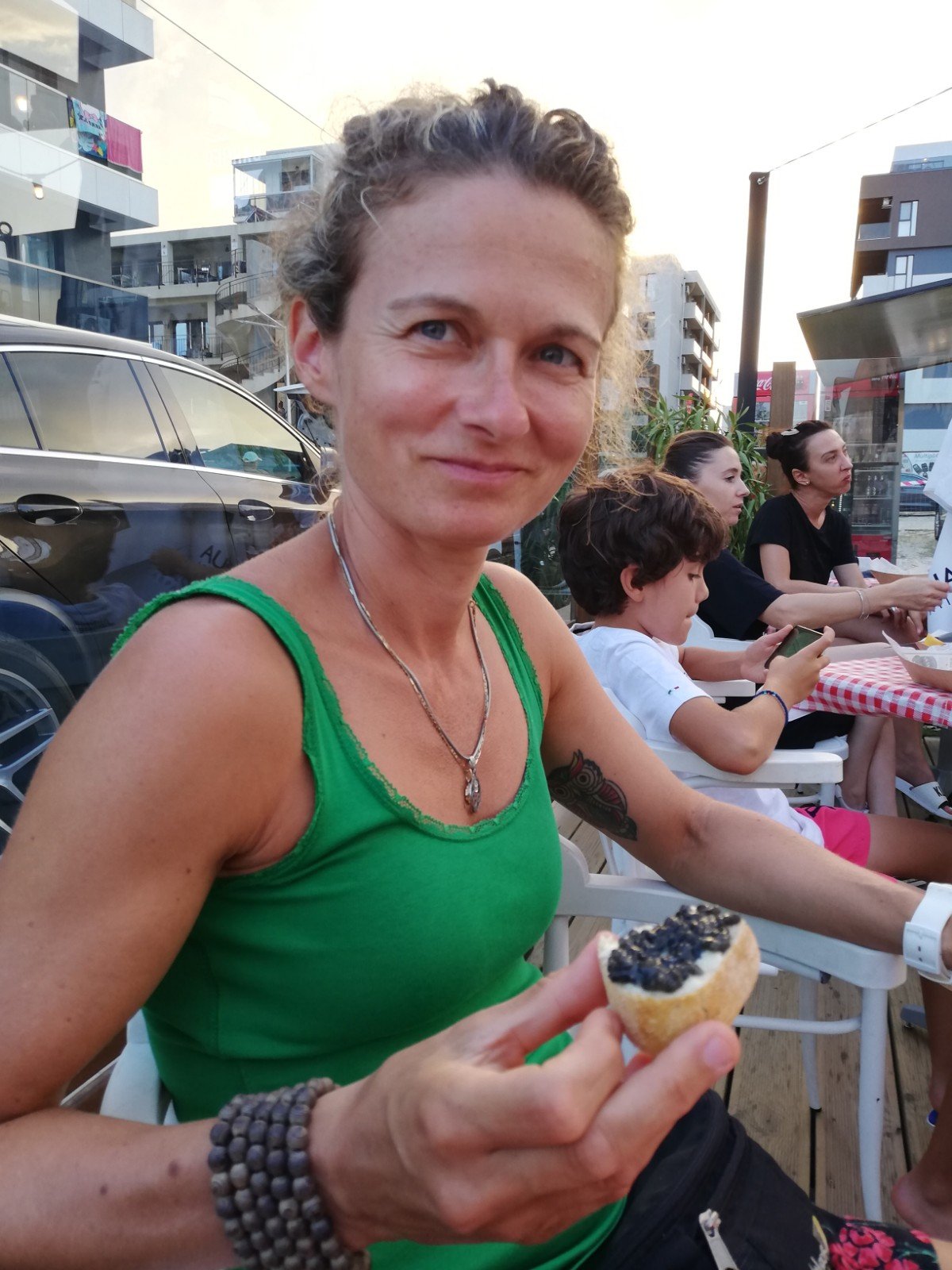 Das Appartement entschädigte jedoch die strapaziöse Anfahrt. Nagelneu und mit allem erdenklichen Luxus ausgestattet, frönten wir der Dekandenz. Offenbar haben in unserem Wohnblock betuchte Rumänen ihre Sommerresidenz. Mit einem davon kamen wir ins Gespräch, da er uns im Cafe ansprach und relativ gut Deutsch konnte. Octavian, ein vornehmer aber nicht aufdringlicher Rumäne, arbeitet als Führungskraft für einen deutschen Konzern. Er lud uns beiläufig für den nächsten Tag zum Essen ein. Wir revanchierten uns mit Wein und Whiskey worauf am Tag danach eine Einladung zu Kaviar erfolgte. Das konnten wir nun wirklich nicht mehr toppen 🙈