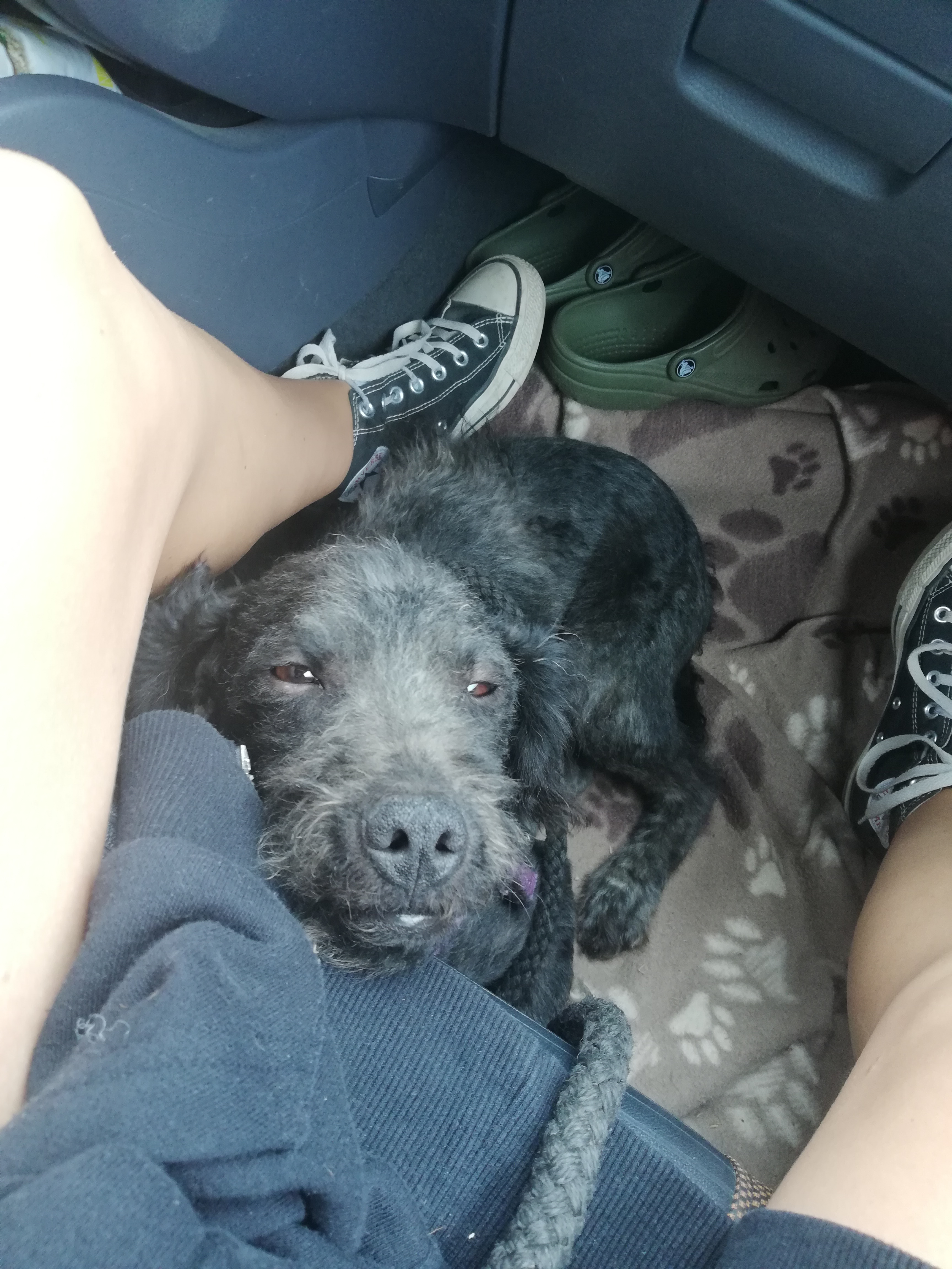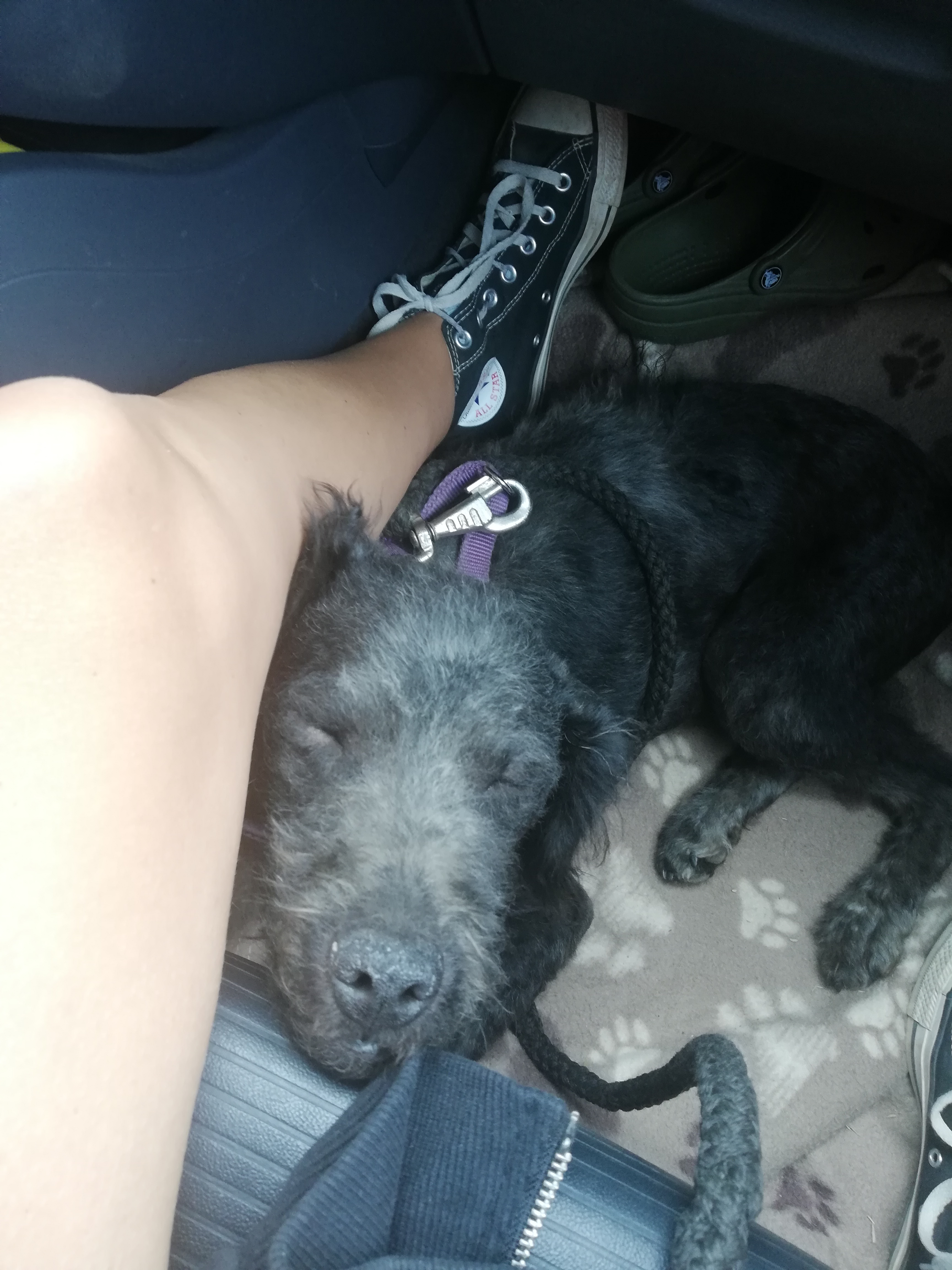 Während wir die letzten Tage Rumänien bis zur Schwarzmeerküstes und wieder retour erkundeten, hat die Shelter-Leiterin Ildiko unsere in Rumänien gefundene Lotti bei sich zuhause aufgenommen, war mit ihr beim Tierarzt zum chippen, kastrieren und Tollwut impfen und hat den Hundepass für die Ausreise organisiert. Leider haben wir uns knapp verpasst und so konnten wir von den uns bereits bekannten Shelter-Helfern Steve und Tina unser neues Familienmitglied übernehmen. Lotti machte es sich gleich im Fußraum bei Birgit gemütlich und kuschelte sich die nächsten 600 km liebevoll an Birgits Beine.